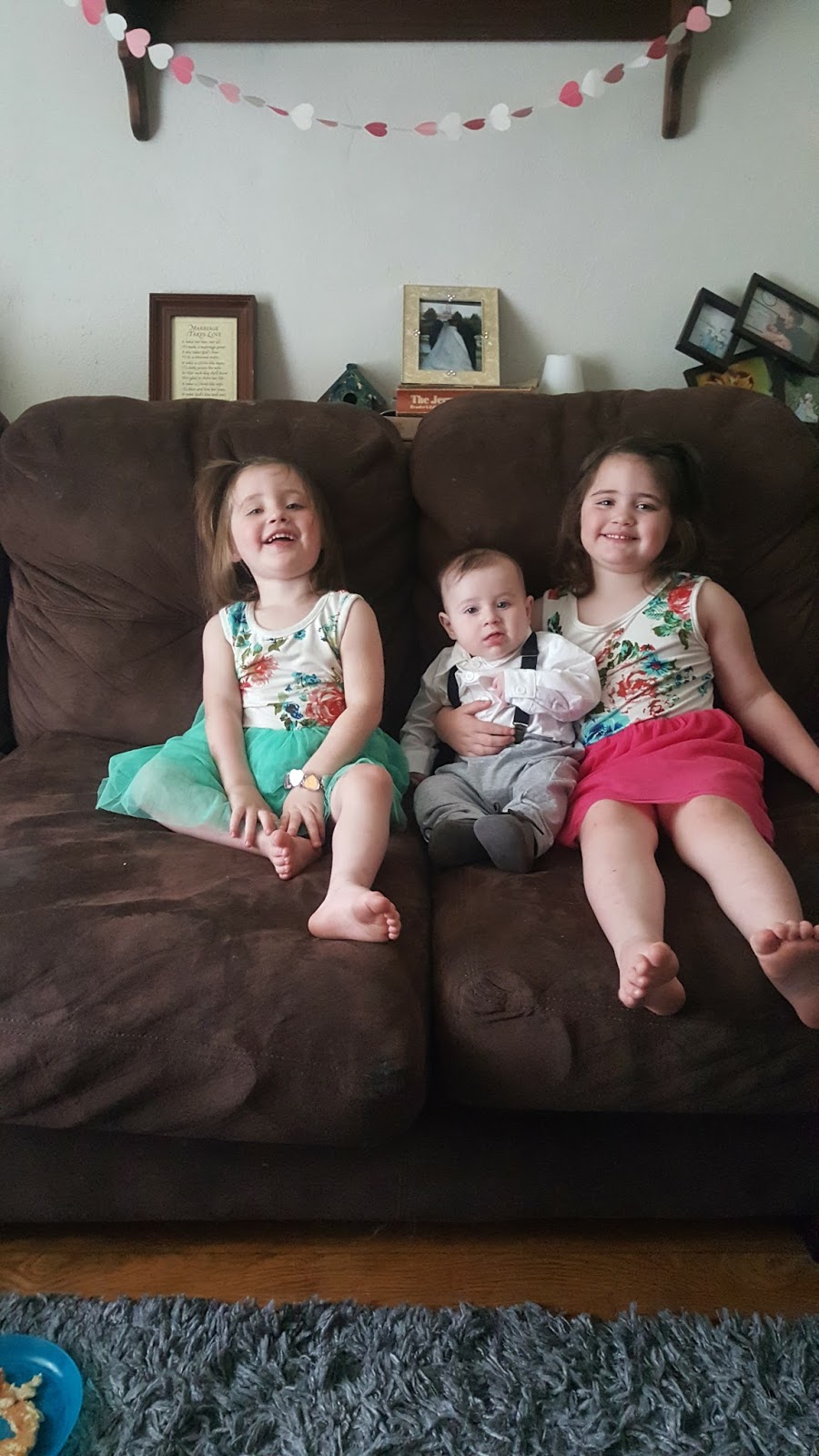 The girls new thing is to "Cheers!" everything together - cup, suckers, ice cream, ect. It's completely adorable. The left is the only Easter picture I got of the kids. Really, the only picture I took on Easter. They clean up pretty well, don't they? haha!